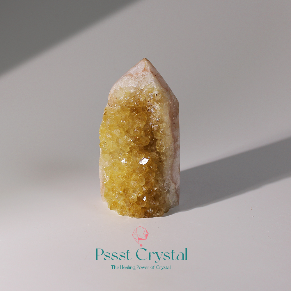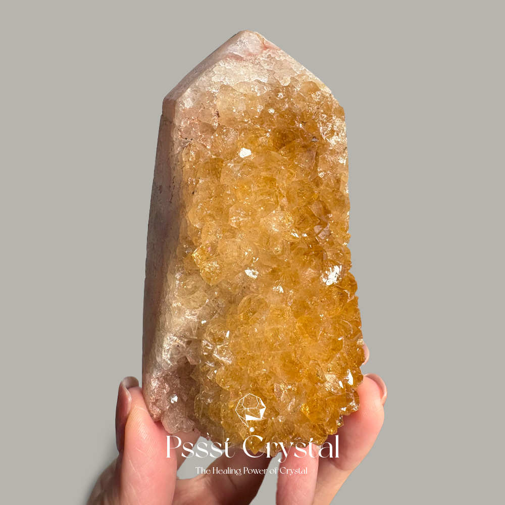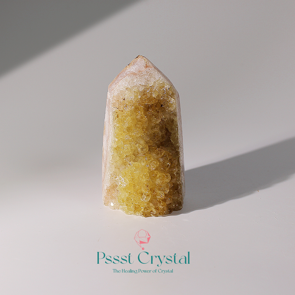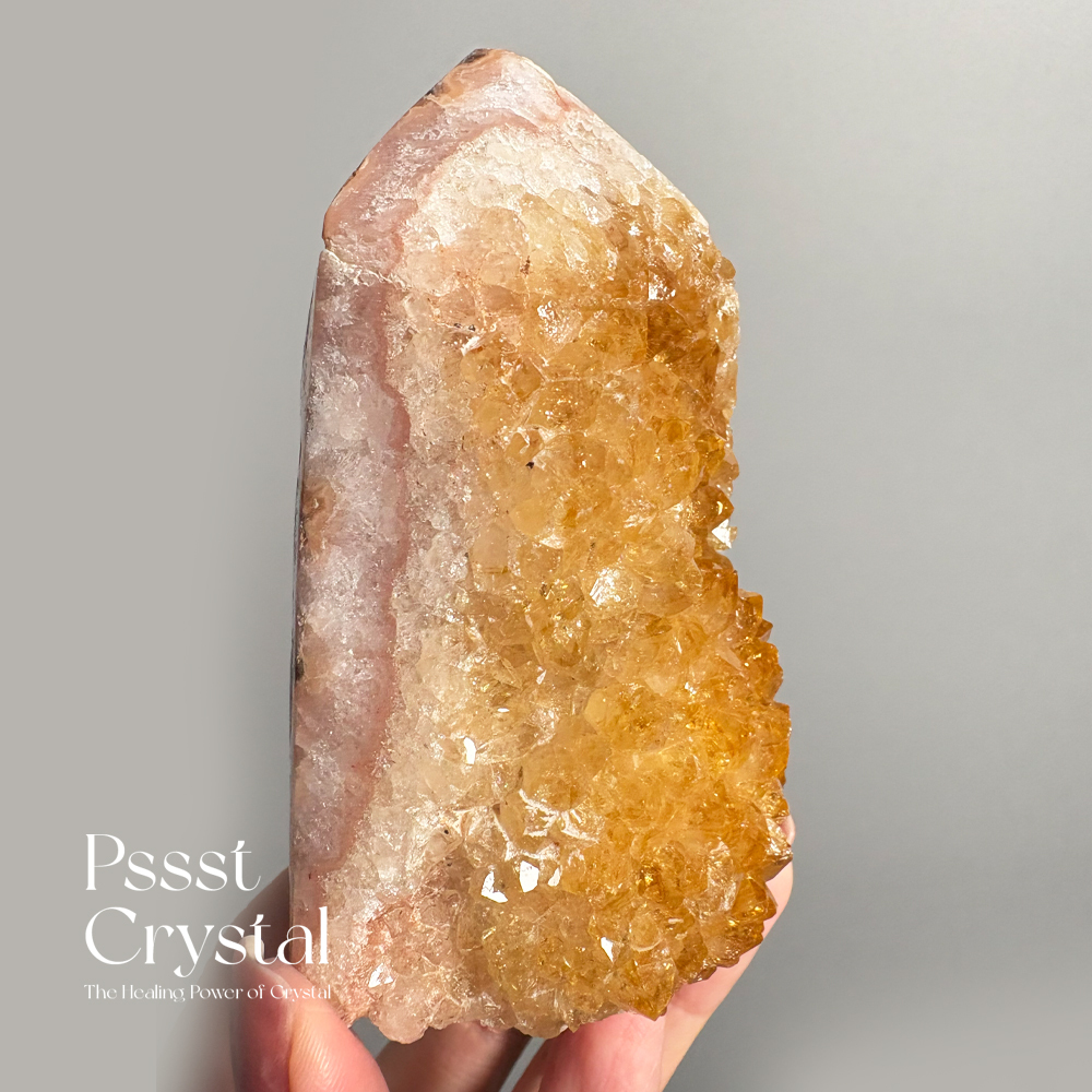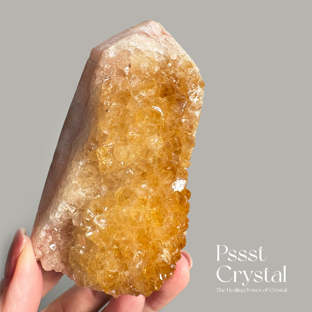特色|黃水晶花柱子是天然花球般雕琢而成,呈現出明亮金黃色澤的晶瑩質感。黃水晶象徵繁榮、希望與陽光的正面能量,被稱之財富水晶,在能量學中被認為具有聚財、帶來自信與正能量的功效。當其融入花柱的造型中,不僅增添空間的視覺美感,也被視為一種風水良品,適合擺放於辦公室、客廳或財位之處。